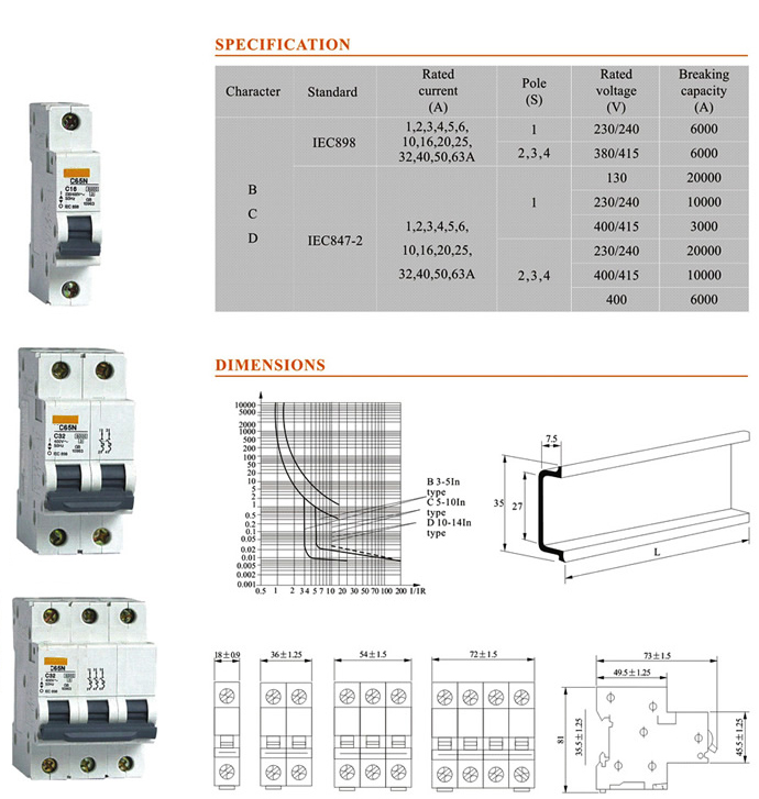 C60N C65N 1P2P3P4P Mini Circuit Breaker