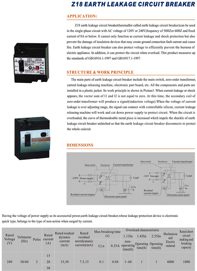 Z18 1P AC 120V NA 240V RESIDUAL CIRCUIT BREAKER